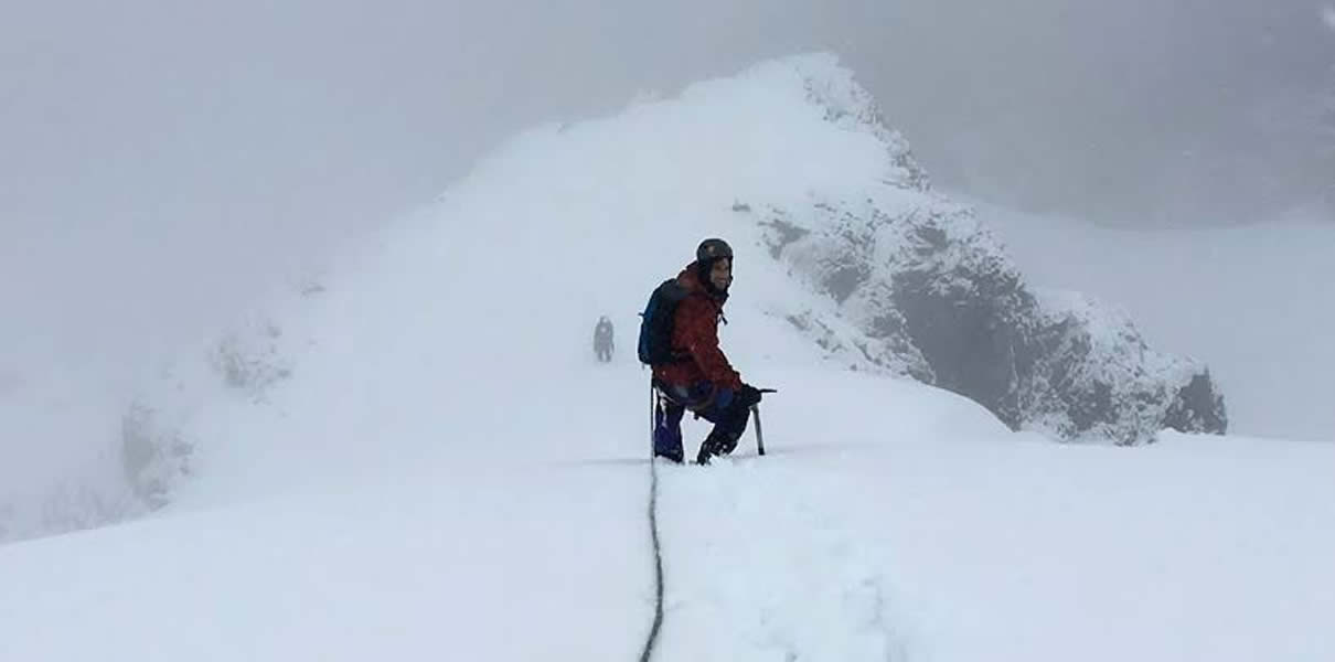- A las 6:00 am aprox. comienza el ascenso por el camino rocoso y vertical de la cara sur del Nevado Contrahierbas el cual nos tomará por 2 horas aproximadamente hasta llegar al inicio del glaciar, Aquí nos equiparemos con los implementos técnicos para el hielo y ascender hasta la cumbre por espacio de 45 minutos a 1 hora.