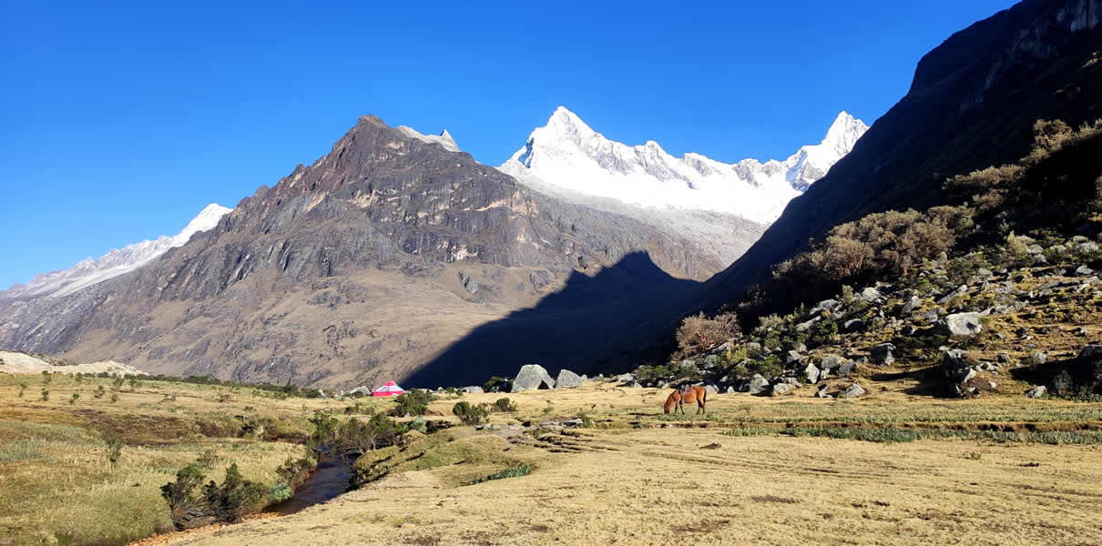 En nuestro último día de trekking, descenderemos por la hermosa Quebrada de Santa Cruz hasta llegar al poblado de Cashapampa. Aquí nos estará esperando el vehículo de la compañía para trasladarnos de regreso a Huaraz y llegar a nuestro hotel. ¡Y así, llegamos al final de nuestro increíble viaje! Este recorrido es aproximadamente de 3 a 4 horas y 10 km. Fin de la caminata.
